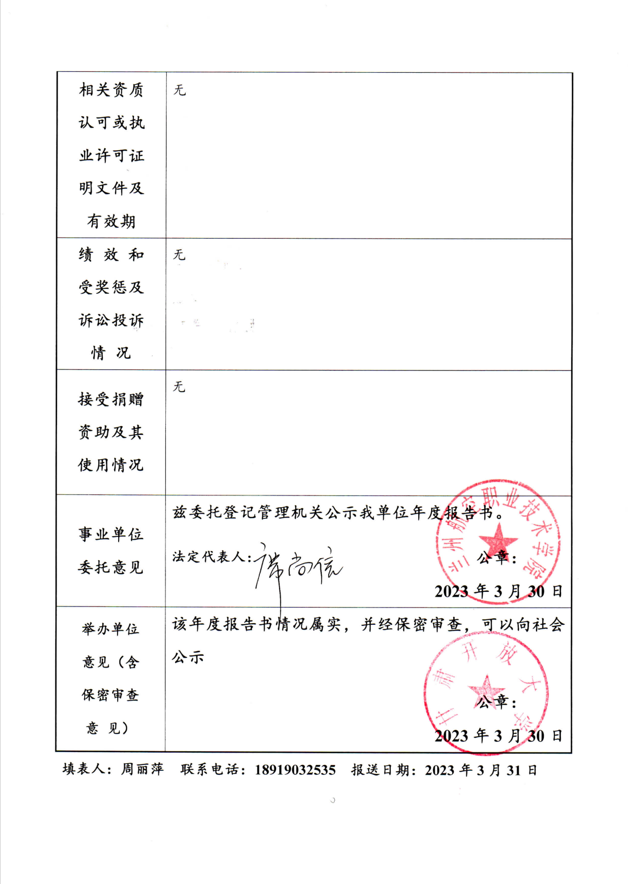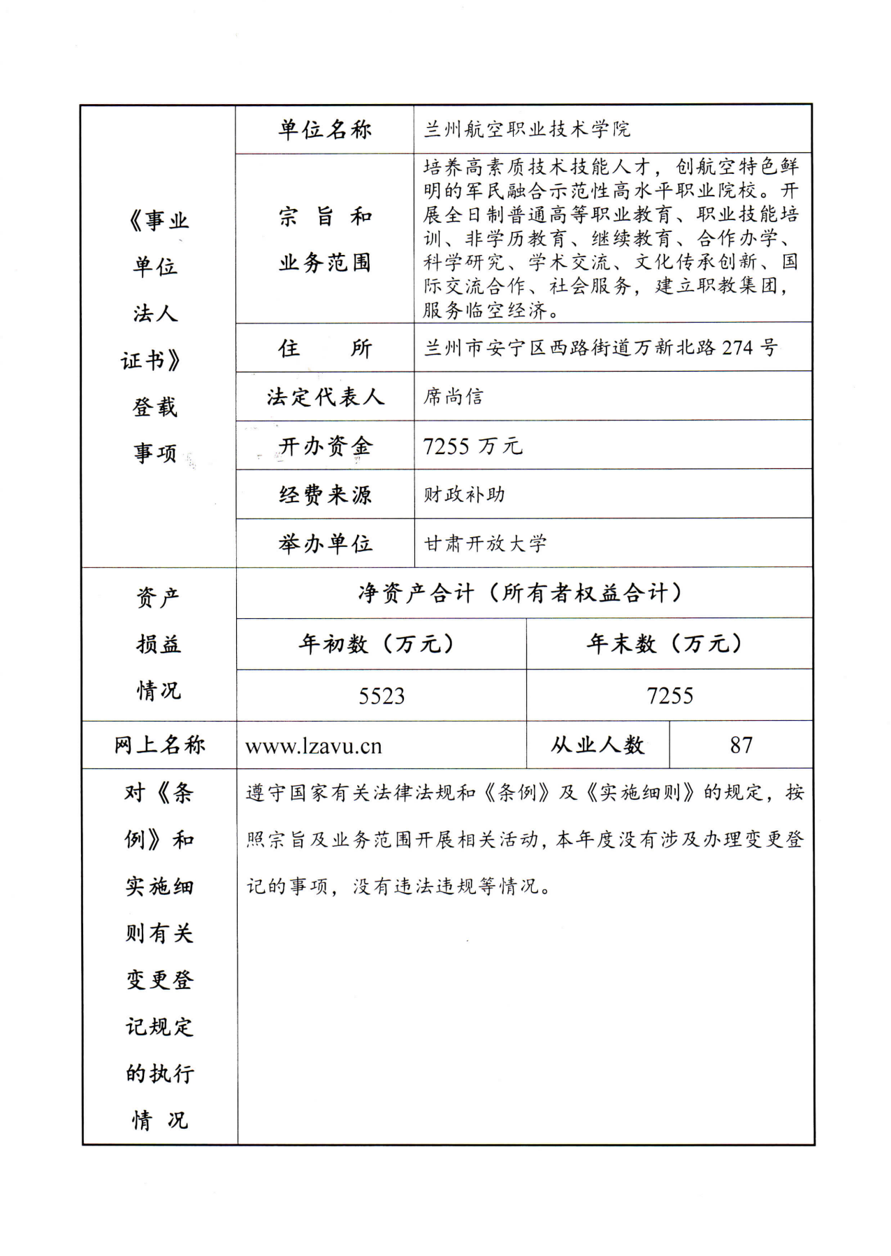 职院事业单位法人年度报告书(公示)
