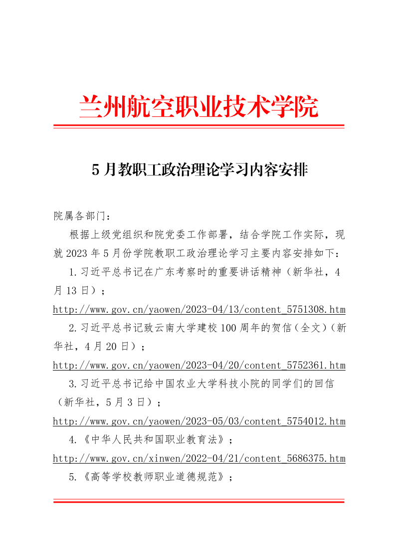 5月教职工政治理论学习内容安排