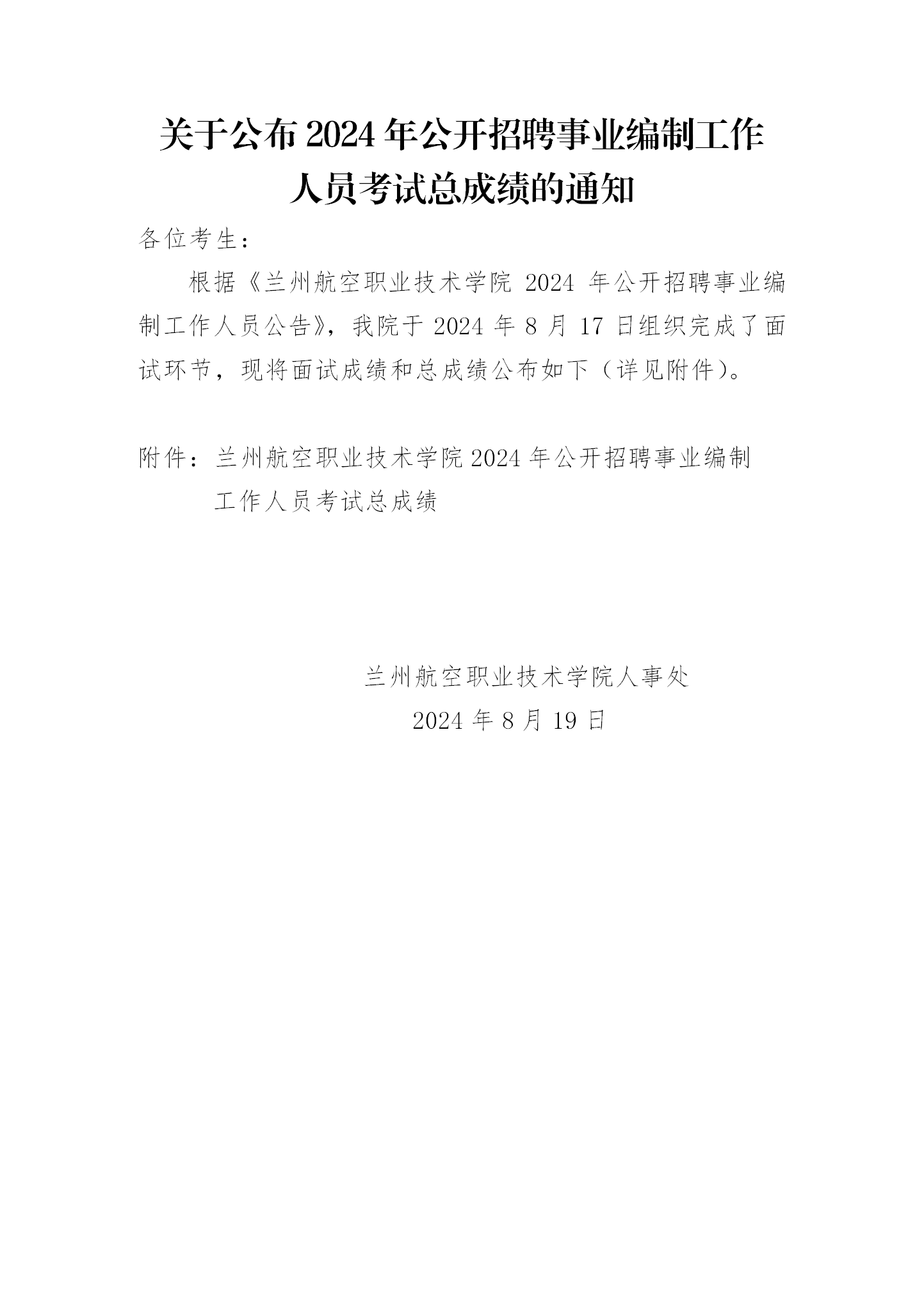 关于公布2024年公开招聘事业编制工作人员考试总成绩的通知
