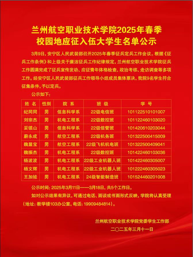 beat365官方网站2025年春季校园地应征入伍大学生名单公示