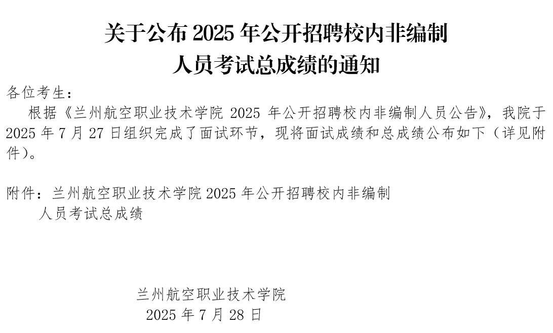 关于公布2025年公开招聘校内非编制人员考试总成绩的通知
