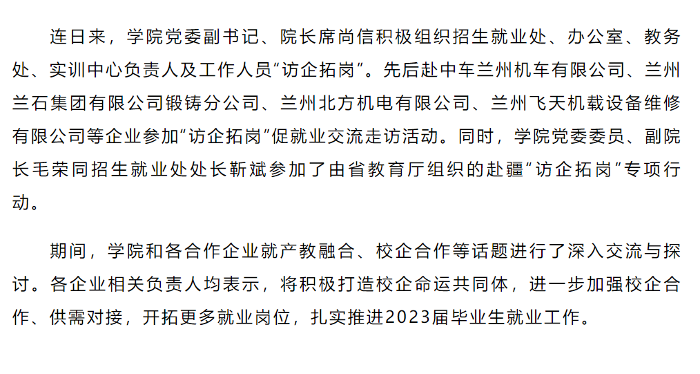 【“三抓三促”行动进行时】发力就业季 下好“及时雨” 学院“访企拓岗”扎实推进