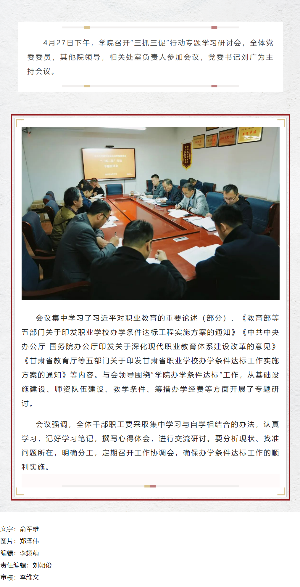 【“三抓三促”行动进行时】学院召开“三抓三促”行动专题学习研讨会