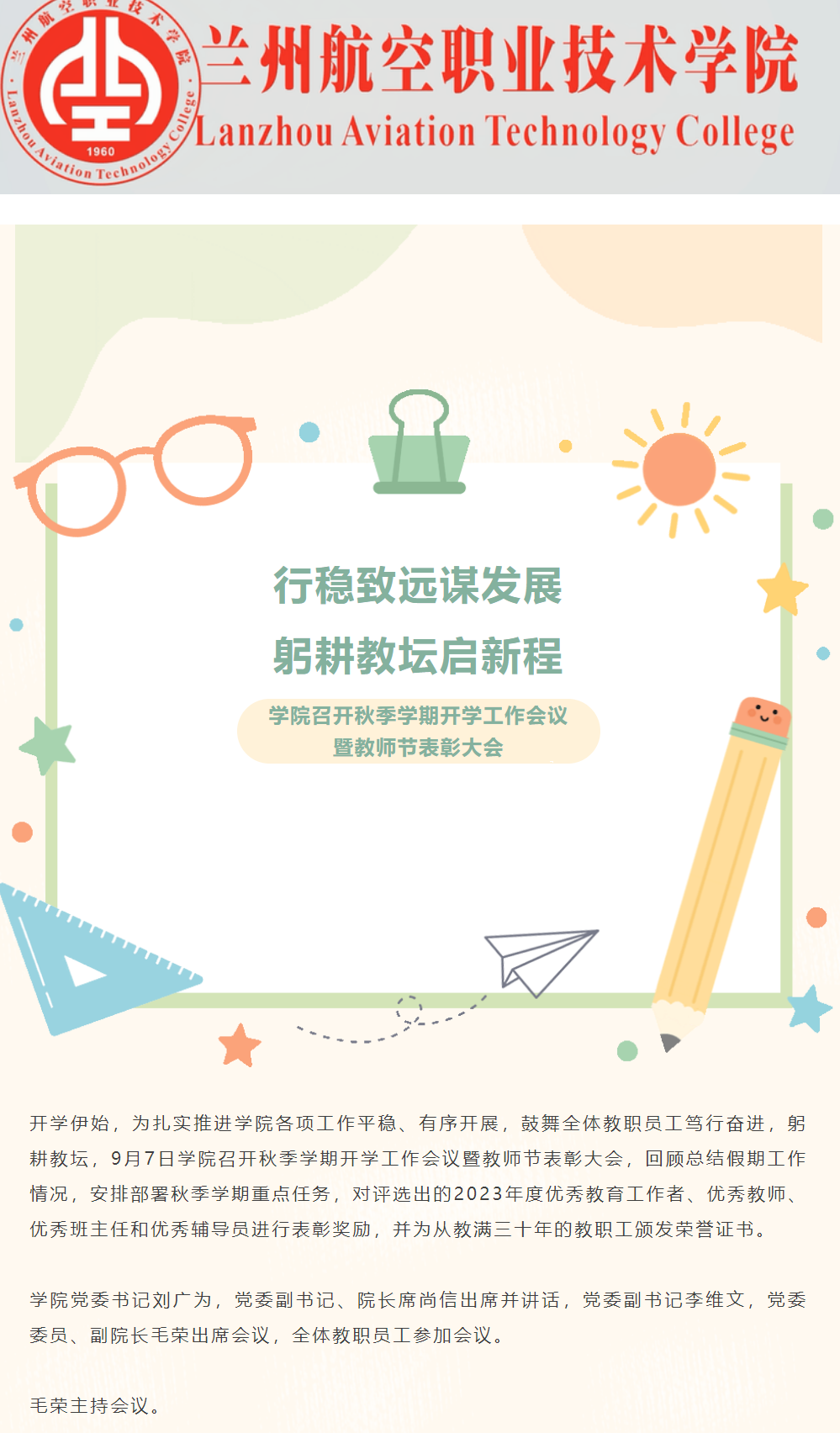 谋发展 启新程 | 学院召开秋季学期开学工作会议暨教师节表彰大会
