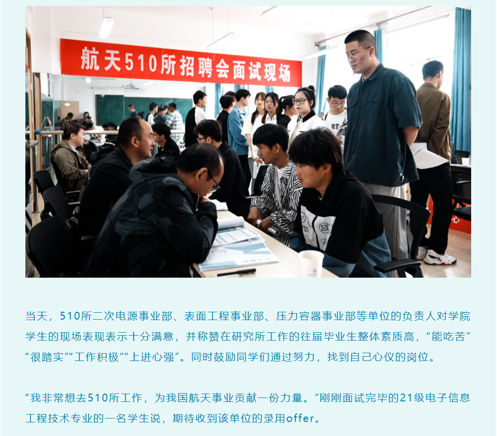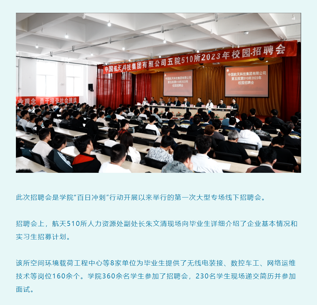 百日冲刺促就业 踔厉奋发建新功—— 学院邀请中国航天科技集团有限公司第五研究院第510研究所举行校园招聘会