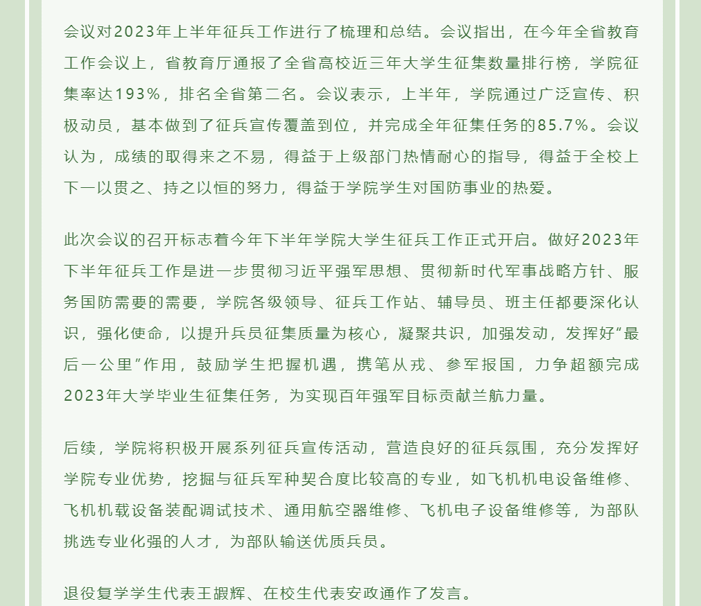 参军尽义务 热血铸军魂|学院召开2023年下半年征兵工作会议