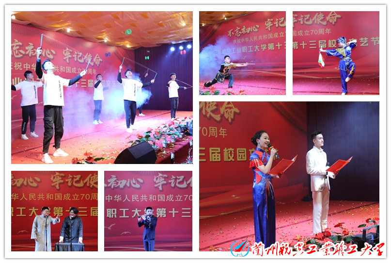 12月28日、29日晚,“不忘初心,牢记使命 纪念中华人民共和国成立七十周年暨第十三届校园文艺节文艺汇演”在beat365官网多功能厅举行。中航工业兰州万里航空机电有限责任公司党委书记、董事长晁世元,党委副书记、总经理盛国苍,党委副书记、纪委书记田沛,副总经理、工会主席郑战文,总会计师但赛君,甘肃广播电视大学校长王宏宁,党委副书记王旭强,副校长田树涛,副校长吴万才,副校长魏兵海,兰州航空工业职工大学、技工学校校长席尚信,书记李维文,副校长王江,副校长俞向阳,以及校企合作单位领导、联合办学单位领导,beat365官网教职工代表、学生代表等1200余人观看了演出。